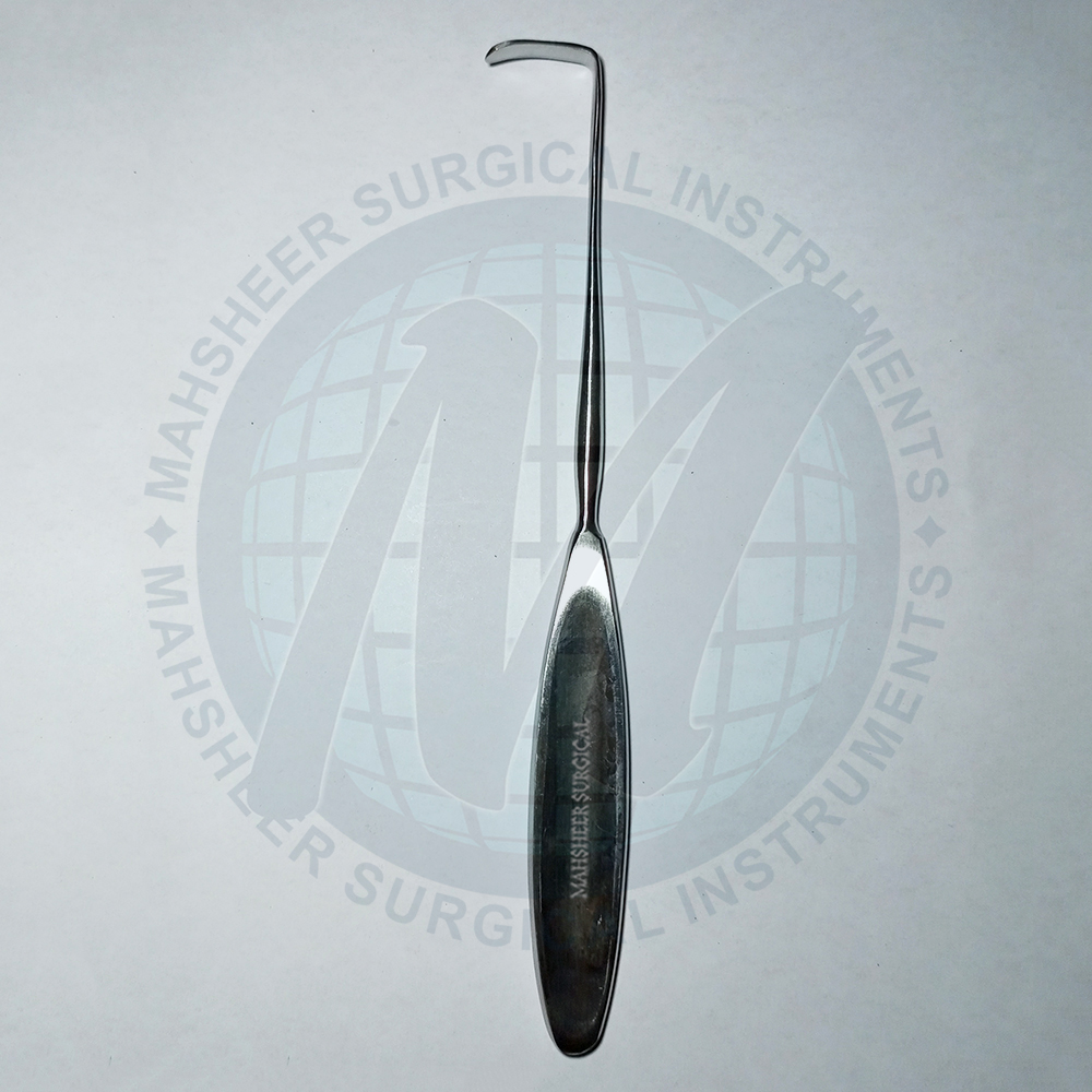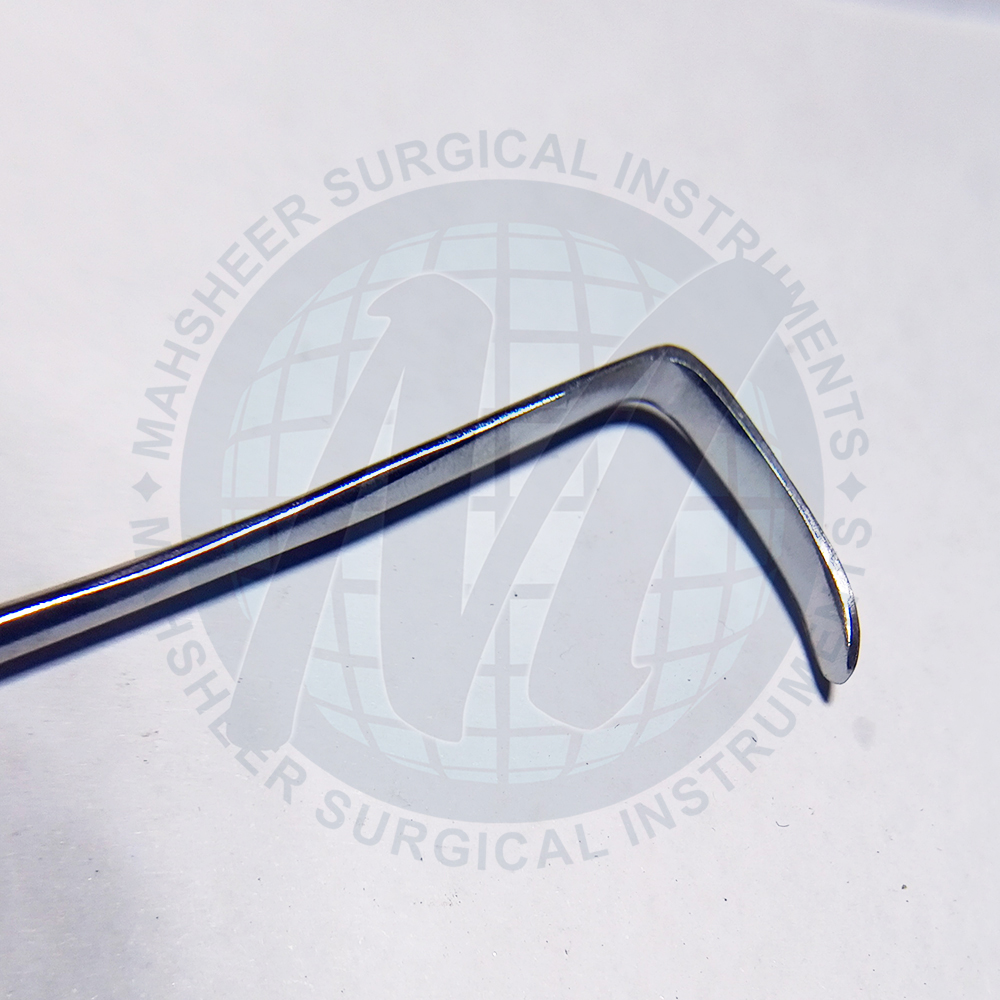 Lahey Retractor is used in thyroidectomy to retract delicate tissues and organs. It has a 0.6m wide curved blade and a lip on the end.