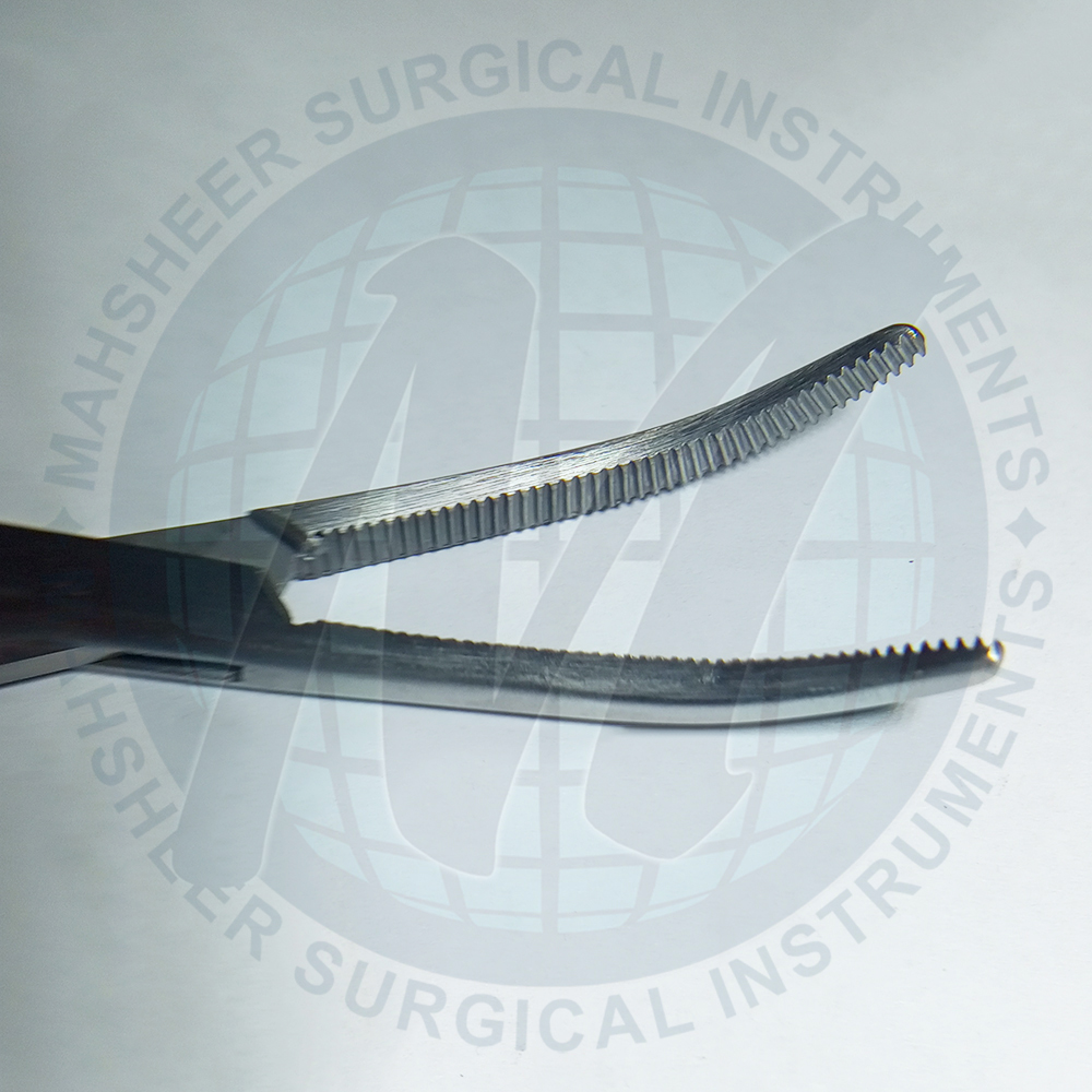 Rochester Pean Hemostatic Forceps is mostly used in hysterectomy procedures to clamp large tissues and vessels for hemostasis. It has serrated jaws.